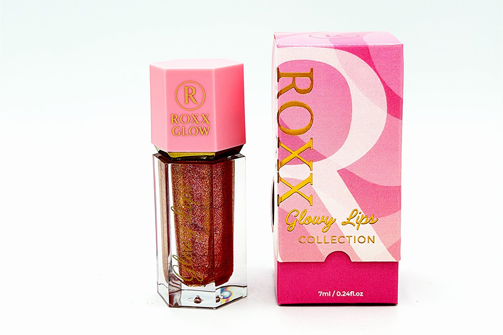 A radiant bronze gloss infused with shimmering reflex glitters that catch the light from every angle, leaving the lips with a warm, luminous glow.
